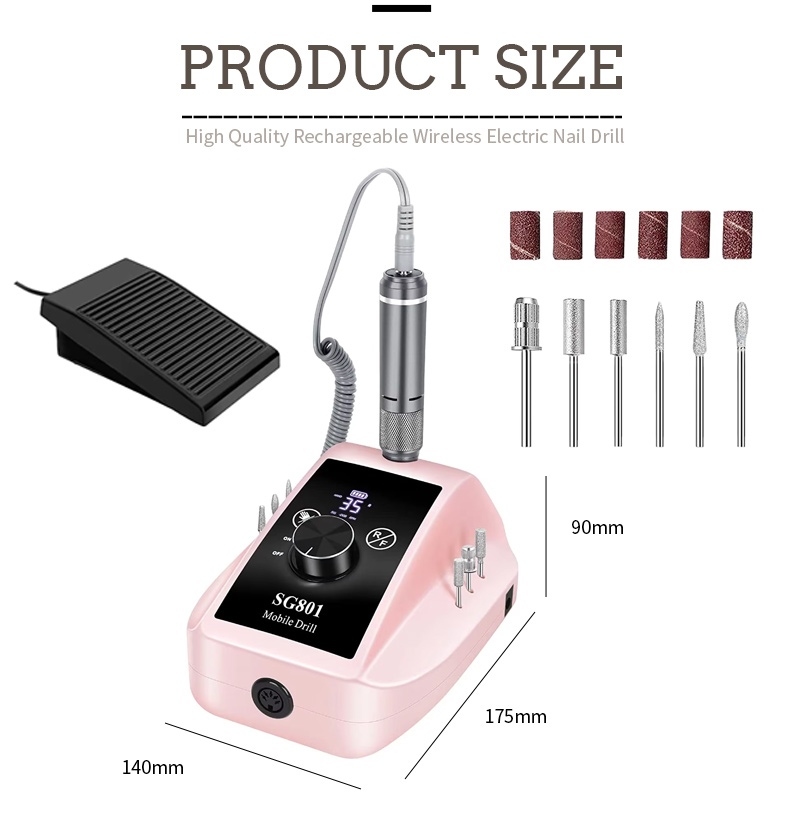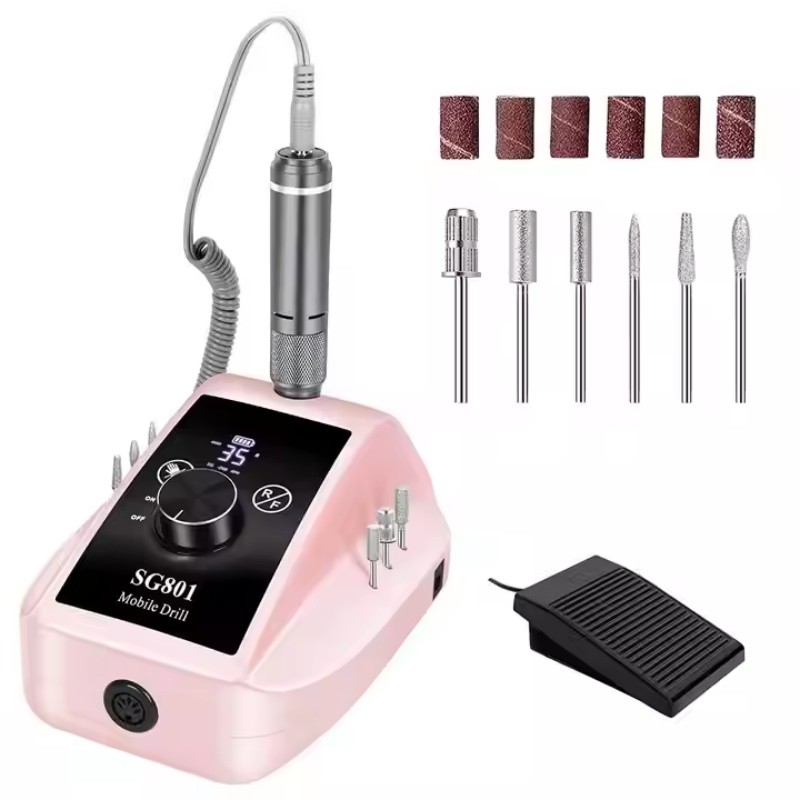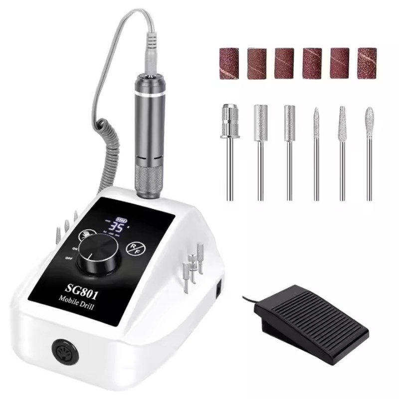 Pārnēsājams nagu urbjmašīnu komplekts elektrisks ar jaudīgu motoru 65w 35000rpm