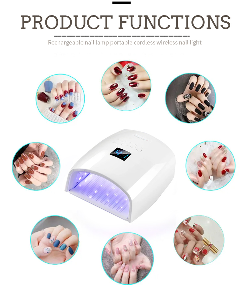 Produkts nodrošina vienmērīgu līmes žūšanu bez saraušanās. Tā dubultie gaismas avoti nodrošina maigu sildīšanu, lai novērstu roku krāsas maiņu un acu nogurumu, piemērots gan rokām, gan kājām, nodrošinot izcili ātrus žāvēšanas rezultātus.