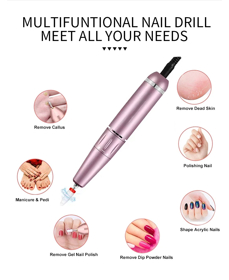 Pārnēsājams nagu urbjmašīnu komplekts elektrisks ar jaudīgu motoru 65w 35000rpm