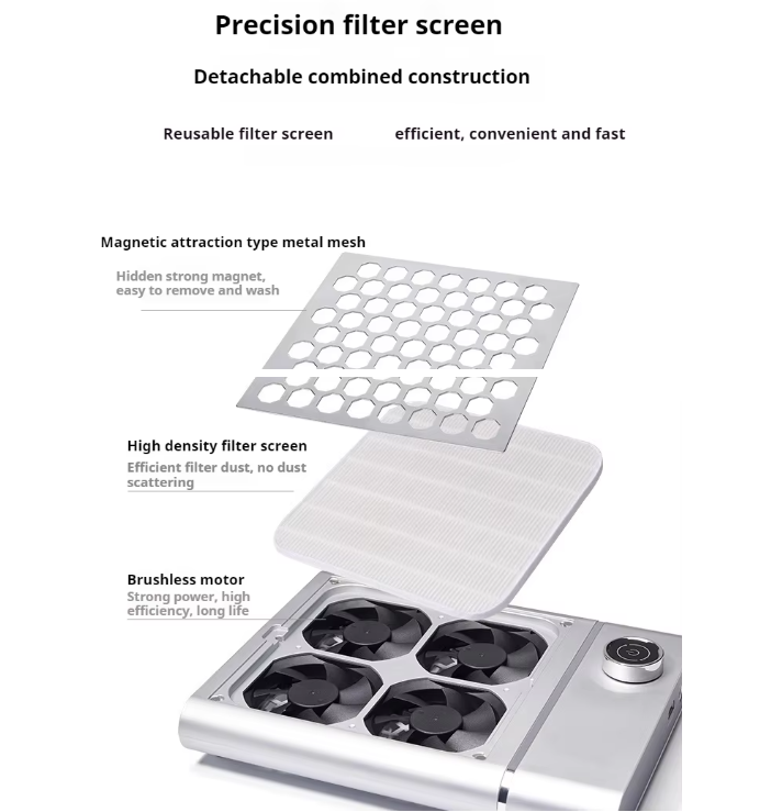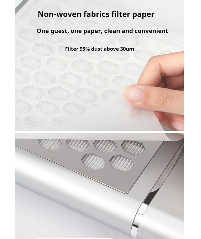 2)Produkta precizitātes filtri efektīvi filtrē dažādas nagu putekļu atmirušās ādas un citus piemaisījumus, blīvi filtri neizplatās putekļu spēju adsorbciju.