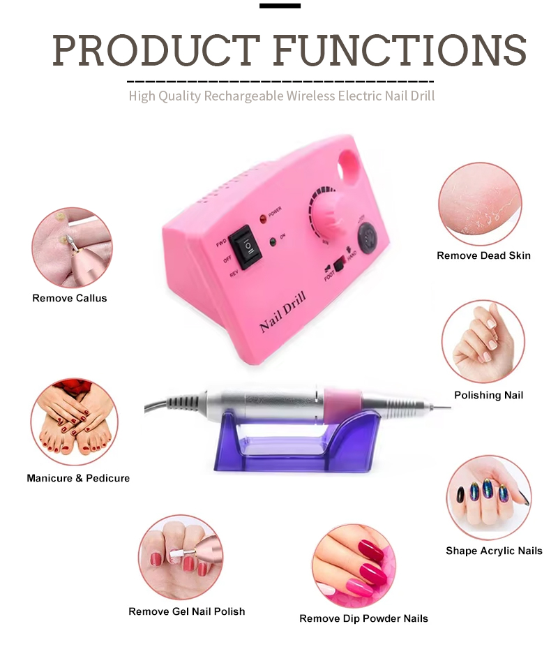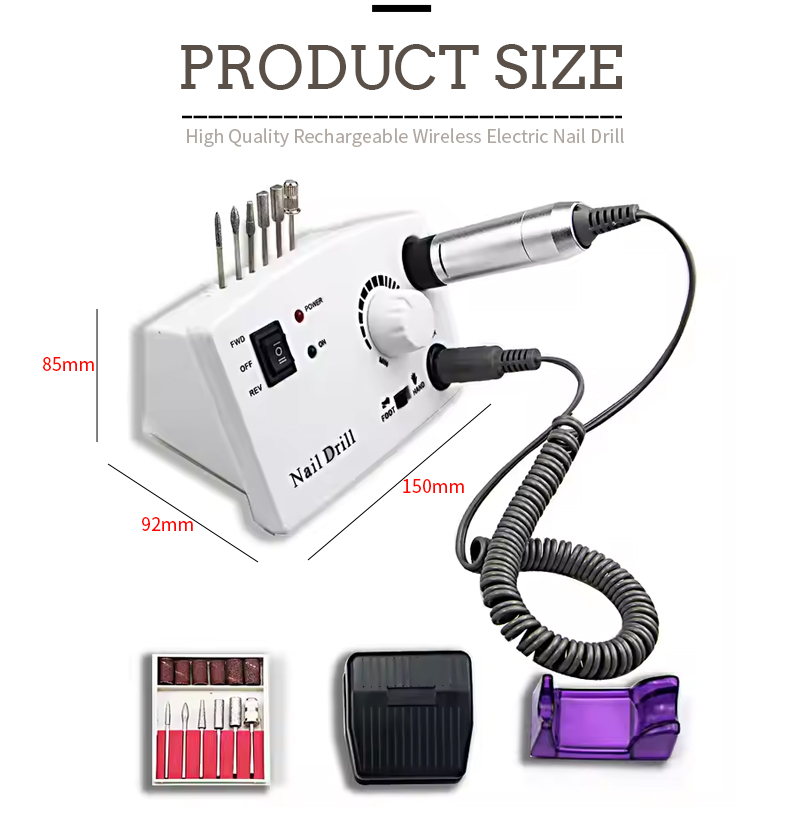 Pārnēsājams nagu urbjmašīnu komplekts elektrisks ar jaudīgu motoru 65w 35000rpm