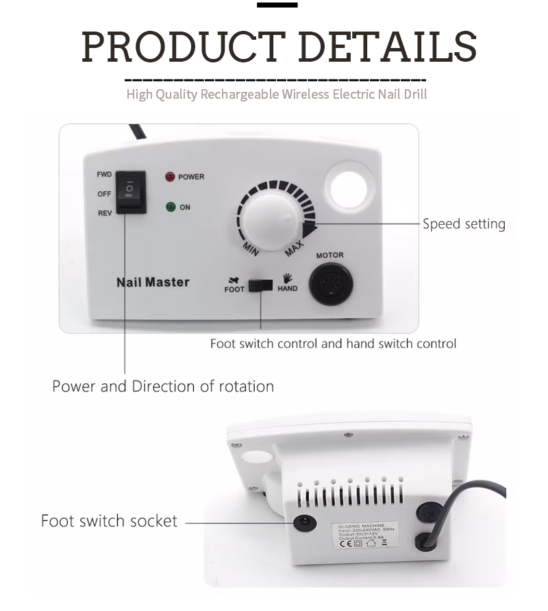 Produkta īpašības un 602 ātrgaitas 30 000 apgriezienu skaita elektriskā nagu fails nagu lakas noņemšanai