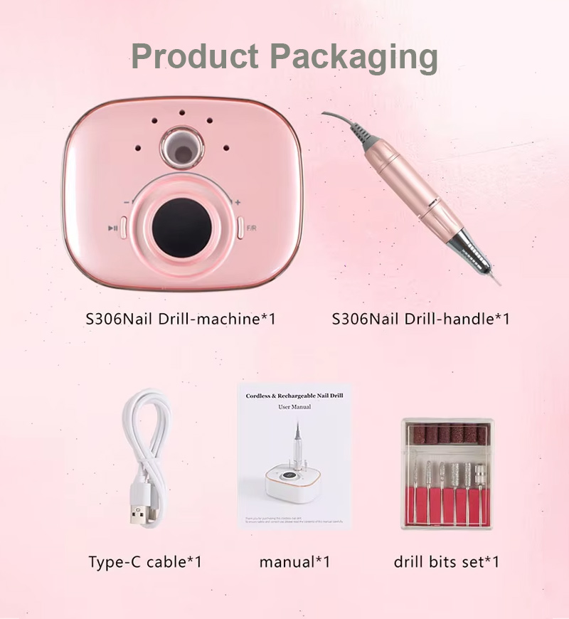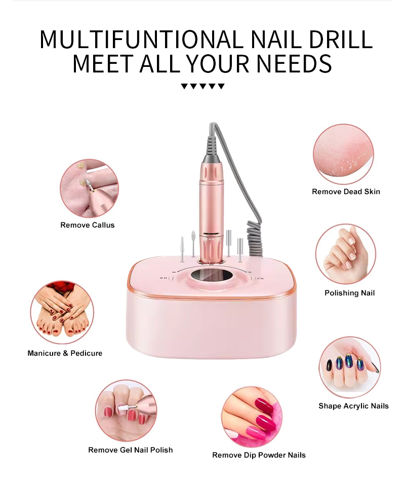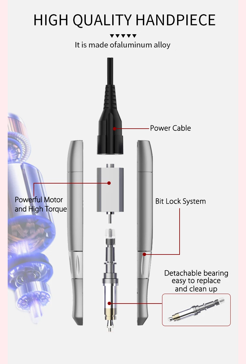 Pārnēsājams nagu urbjmašīnu komplekts elektrisks ar jaudīgu motoru 65w 35000rpm