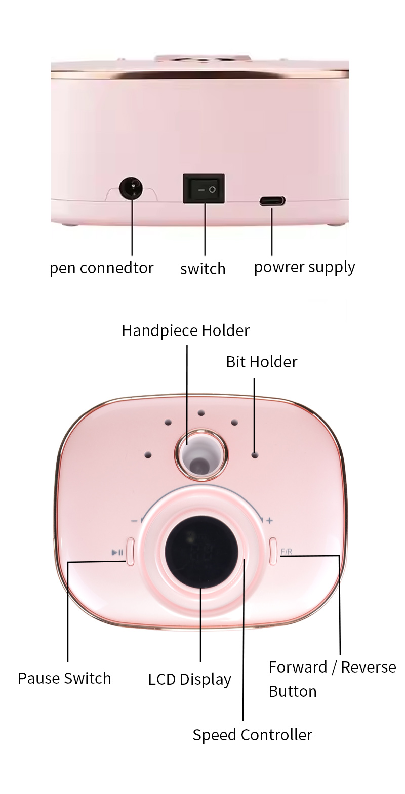 Elektriskā nagu urbjmašīna, kuru nav viegli sabojāt, 65 w 35 000 apgr./min
