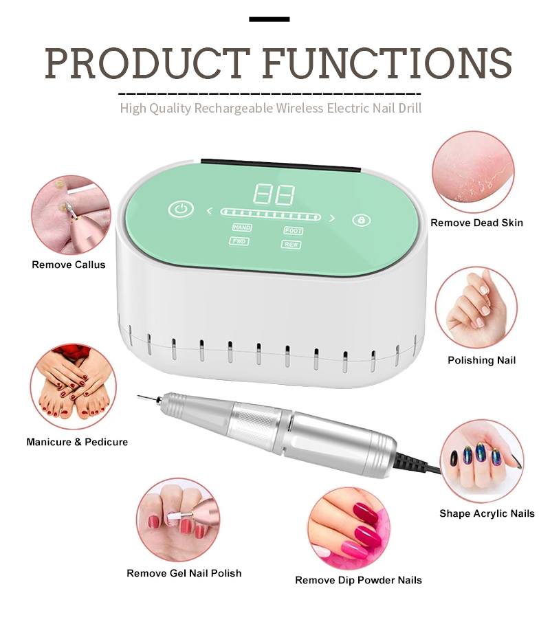 Uzlādējams nagu urbjmašīnas komplekts nagu urbjmašīna uz pirkstiem pirkstiem 35w 35000rpm