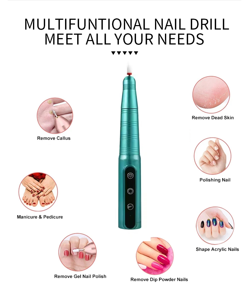 Pārnēsājams nagu urbjmašīnu komplekts elektrisks ar jaudīgu motoru 65w 35000rpm