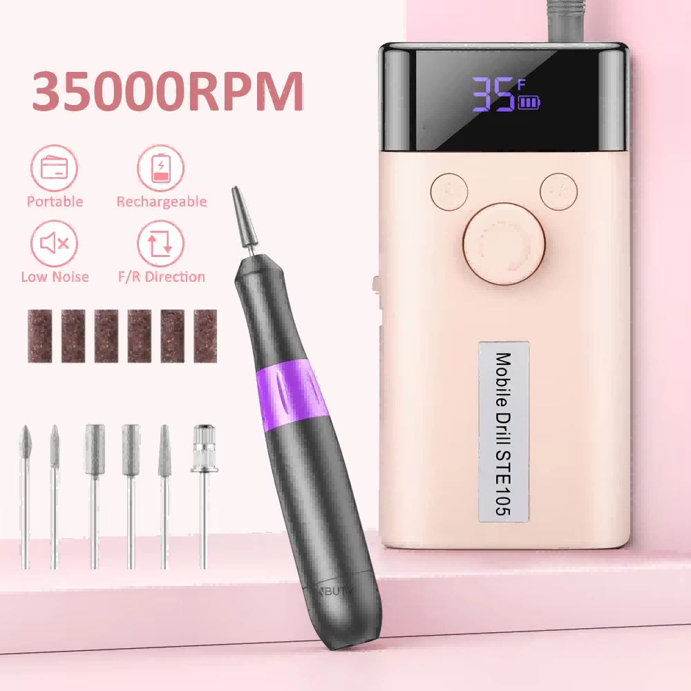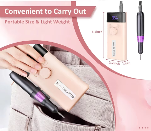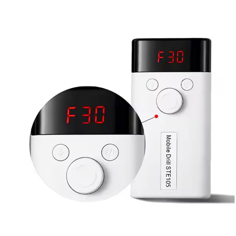 Šīs elektriskās nagu pulēšanas ierīces displeja dizains ar 30 000 apgr./min ir ieslēgšanas/izslēgšanas slēdzis un rotācija uz priekšu/atpakaļ ar vienu pogu, ātrās uzlādes ligzda apakšā, maināma urbja ligzda augšpusē un trīs pozīciju regulējams ātrums, lai apmierinātu dažādas vajadzības.