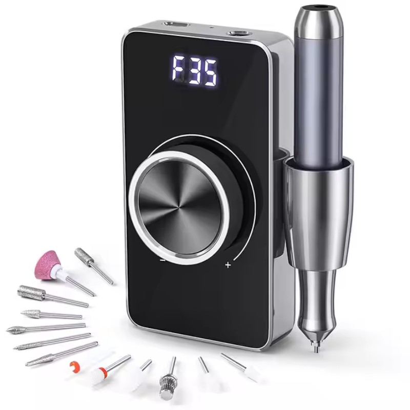 Pārnēsājams nagu urbjmašīnu komplekts elektrisks ar jaudīgu motoru 65w 35000rpm