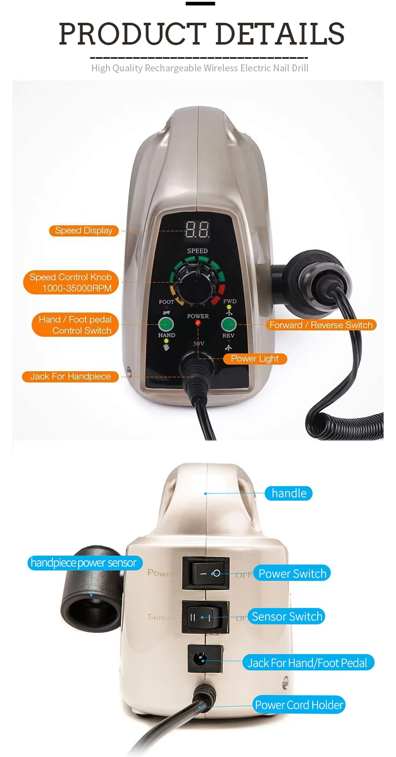 Pārnēsājams nagu urbjmašīnu komplekts elektrisks ar jaudīgu motoru 65w 35000rpm