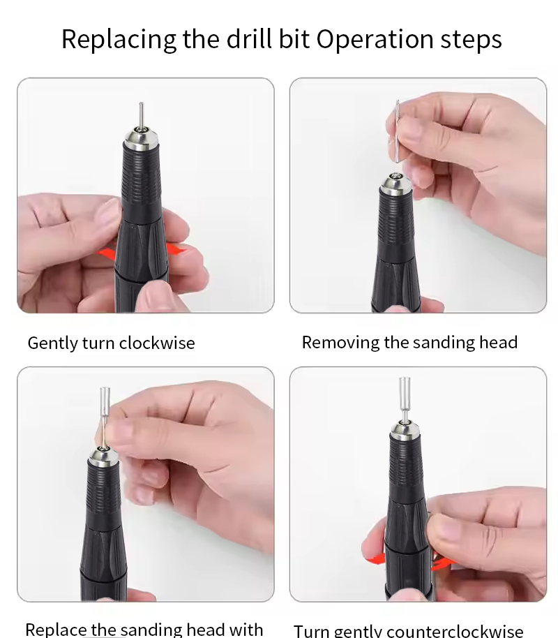 5. Rokturis slīpēšanas adata ir noņemama.
