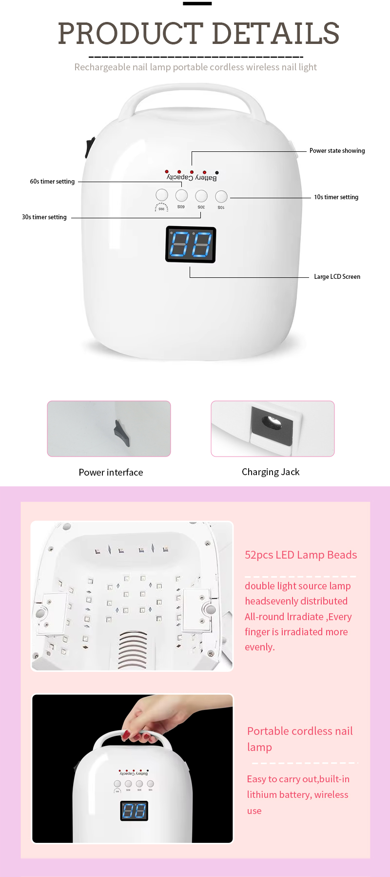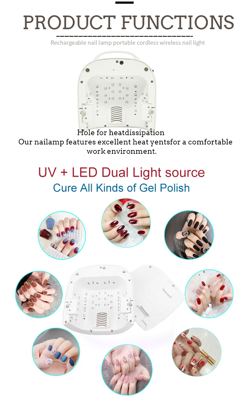 Produkts nodrošina pat līmes žāvēšanu bez saraušanās. Tās divkāršās gaismas avoti nodrošina maigu sildīšanu, lai novērstu roku maiņu un acu celmu, kas piemērots abām rokām un kājām, nodrošinot ievērojami ātru žāvēšanas rezultātus.