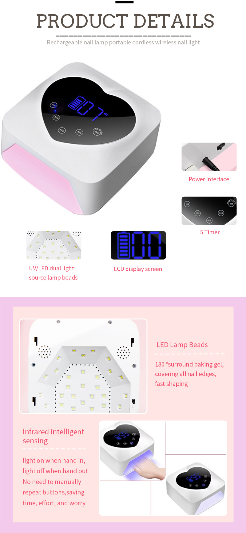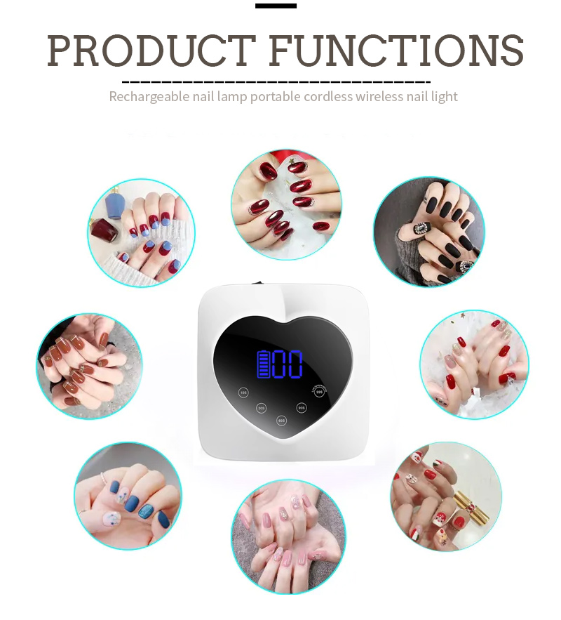 Produkts nodrošina pat līmes žāvēšanu bez saraušanās. Tās divkāršās gaismas avoti nodrošina maigu sildīšanu, lai novērstu roku maiņu un acu celmu, kas piemērots abām rokām un kājām, nodrošinot ievērojami ātru žāvēšanas rezultātus.