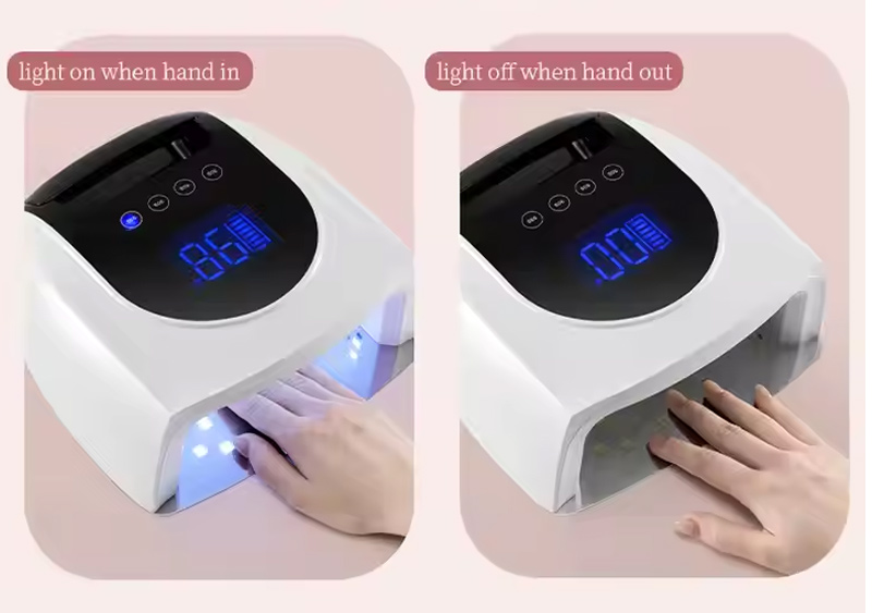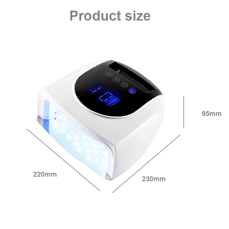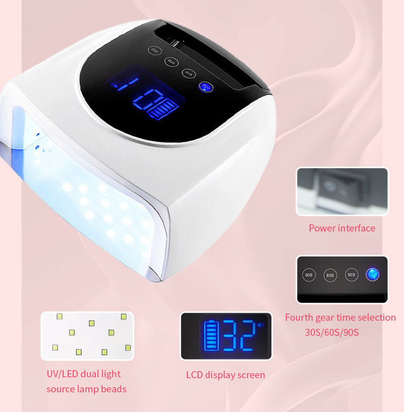 Produkts nodrošina vienmērīgu līmes žūšanu bez saraušanās. Tā dubultie gaismas avoti nodrošina maigu sildīšanu, lai novērstu roku krāsas maiņu un acu nogurumu, piemērots gan rokām, gan kājām, nodrošinot izcili ātrus žāvēšanas rezultātus.