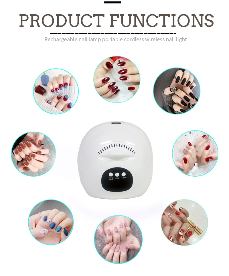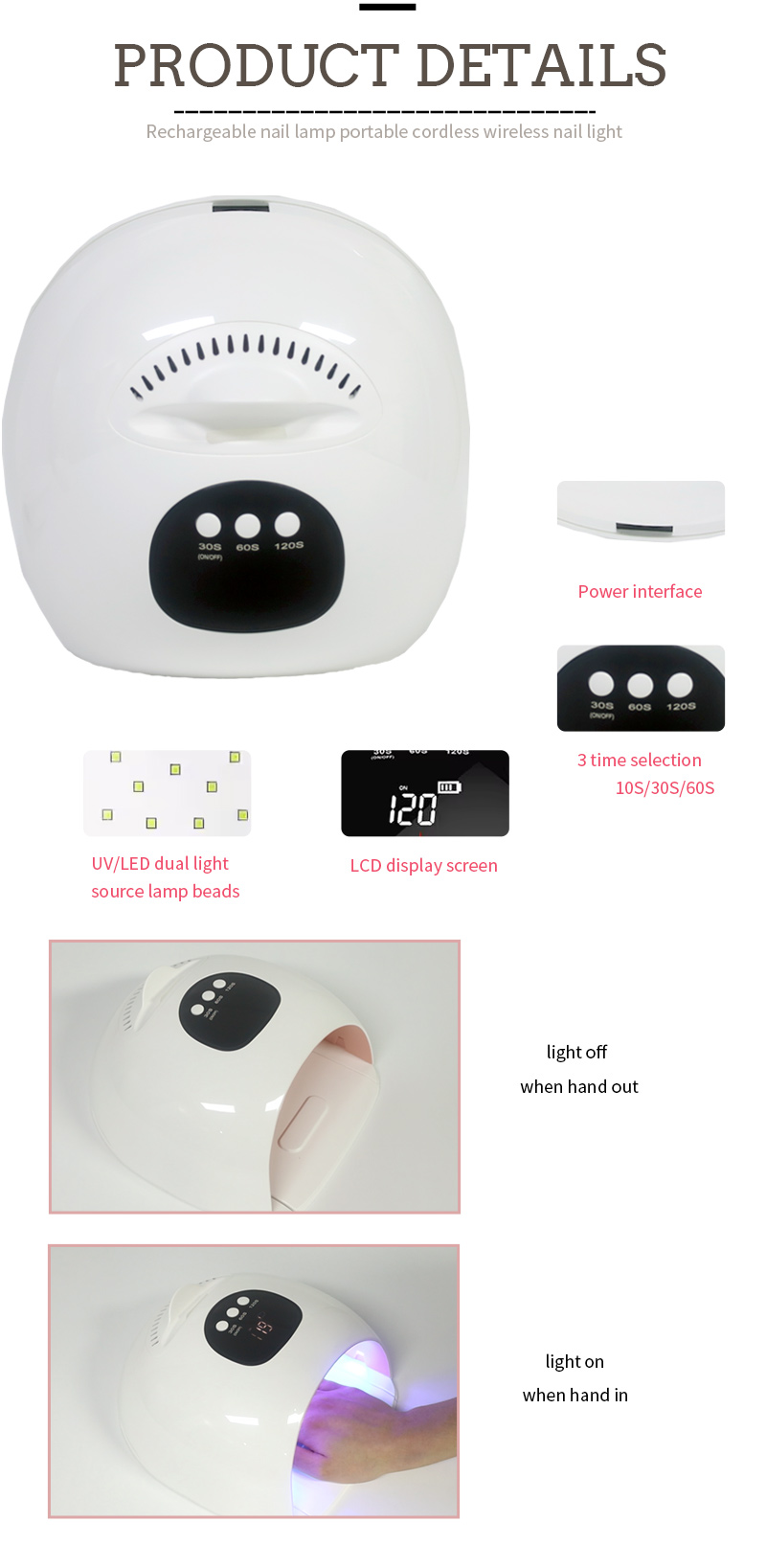 Produkts nodrošina vienmērīgu līmes žūšanu bez saraušanās. Tā dubultie gaismas avoti nodrošina maigu sildīšanu, lai novērstu roku krāsas maiņu un acu nogurumu, piemērots gan rokām, gan kājām, nodrošinot izcili ātrus žāvēšanas rezultātus.