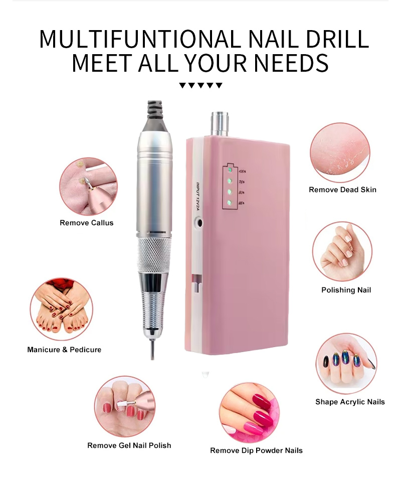 Pārnēsājams nagu urbjmašīnu komplekts elektrisks ar jaudīgu motoru 65w 35000rpm