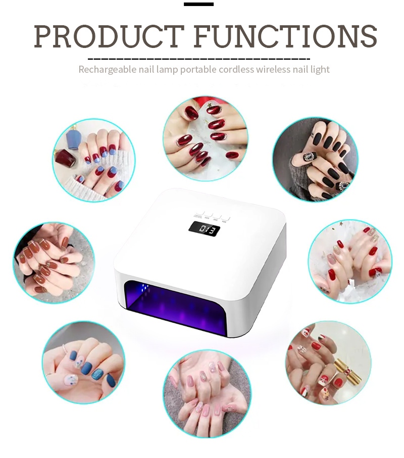 Augstas kvalitātes ātrās nagu žāvēšanas lampa nodrošina vienmērīgu līmes žūšanu bez saraušanās. Tā dubultie gaismas avoti nodrošina maigu sildīšanu, lai novērstu roku krāsas maiņu un acu nogurumu, piemērots gan rokām, gan kājām, nodrošinot izcili ātrus žāvēšanas rezultātus.