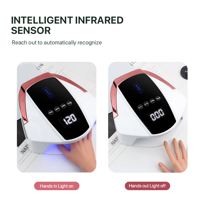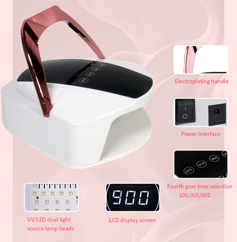Produkts nodrošina vienmērīgu līmes žūšanu bez saraušanās. Tā dubultie gaismas avoti nodrošina maigu sildīšanu, lai novērstu roku krāsas maiņu un acu nogurumu, piemērots gan rokām, gan kājām, nodrošinot izcili ātrus žāvēšanas rezultātus.