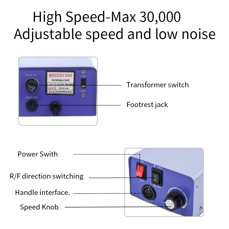 1, Regulējams ātrums, jaudīgs motors, liela ātruma slīpēšana, bezgalīgas pogas reāllaika ātruma regulēšana.