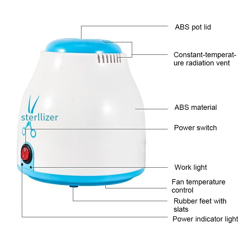 Šis sterilizators galvenokārt ģenerē siltumu caur sildīšanas gredzenu, izmantojot augstu temperatūru dezinfekcijai.