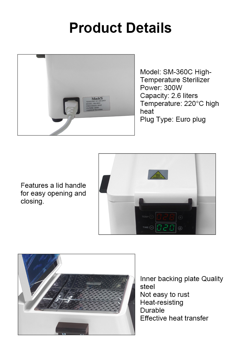 Šis sterilizators galvenokārt ģenerē siltumu caur sildīšanas gredzenu, izmantojot augstu temperatūru dezinfekcijai.