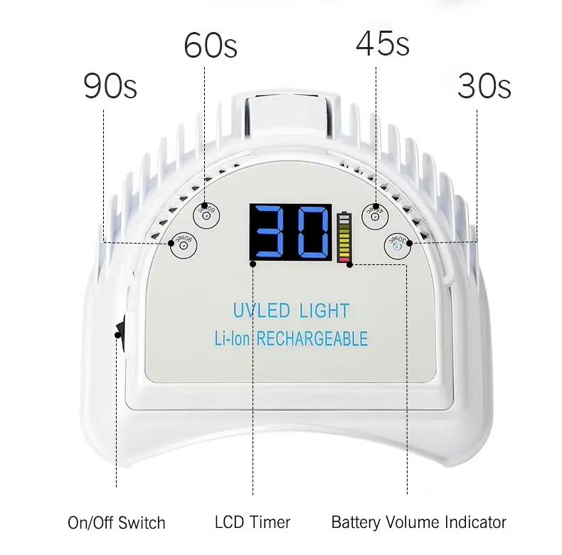 24W uzlādējams bezvada darbvirsmas produkts humanizēts trīsdimensiju dizains, bezmaksas rokas, pastas nagu rotaslietas vienkāršākas, 3 sekundes cep sausu nagu līmi, ērtu un ātru. Rentabla pirmā izvēle, elektriskā uzglabāšanas veida nagu fototerapijas mašīna, ļoti ērti pārvadājamai ceļošanai.