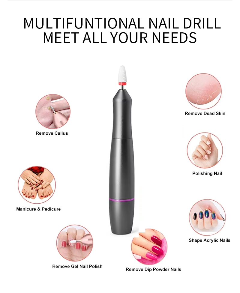 Pārnēsājams nagu urbjmašīnu komplekts elektrisks ar jaudīgu motoru 65w 35000rpm