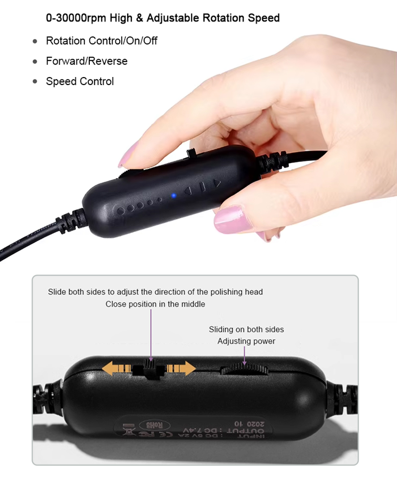 1, Regulējams ātrums, jaudīgs motors, liela ātruma slīpēšana, bezgalīgas pogas reāllaika ātruma regulēšana.