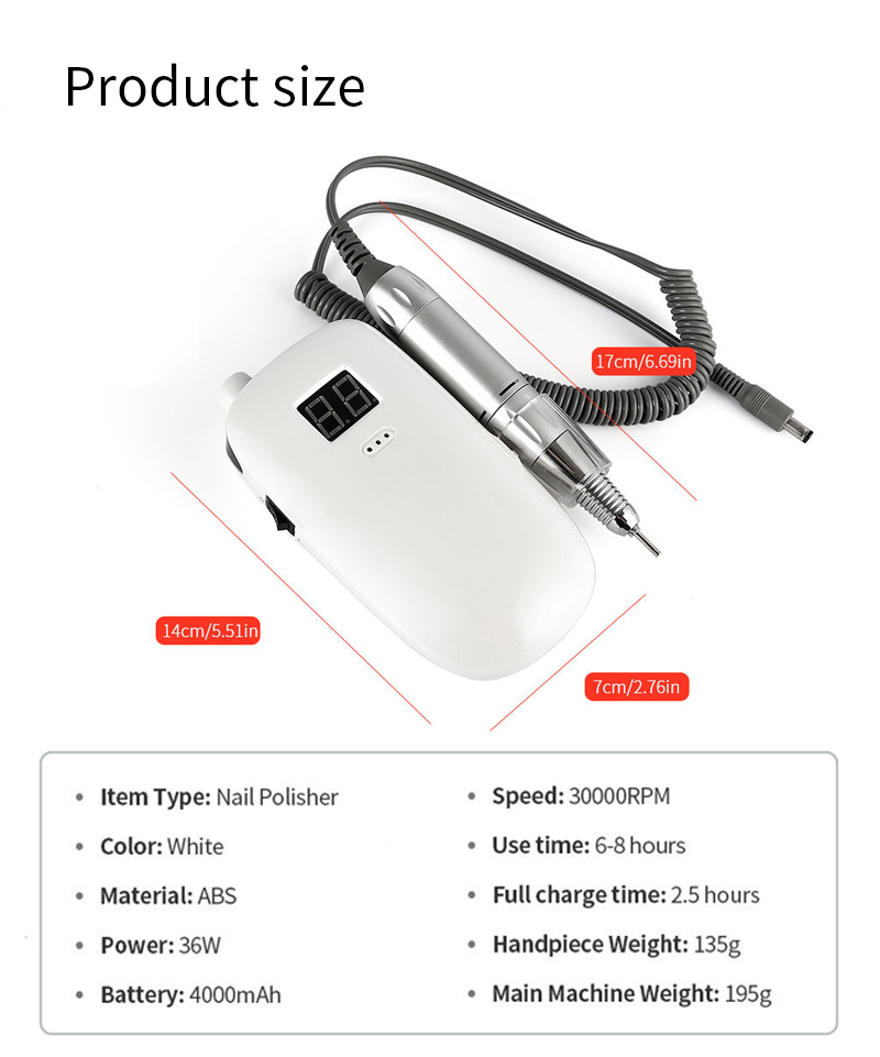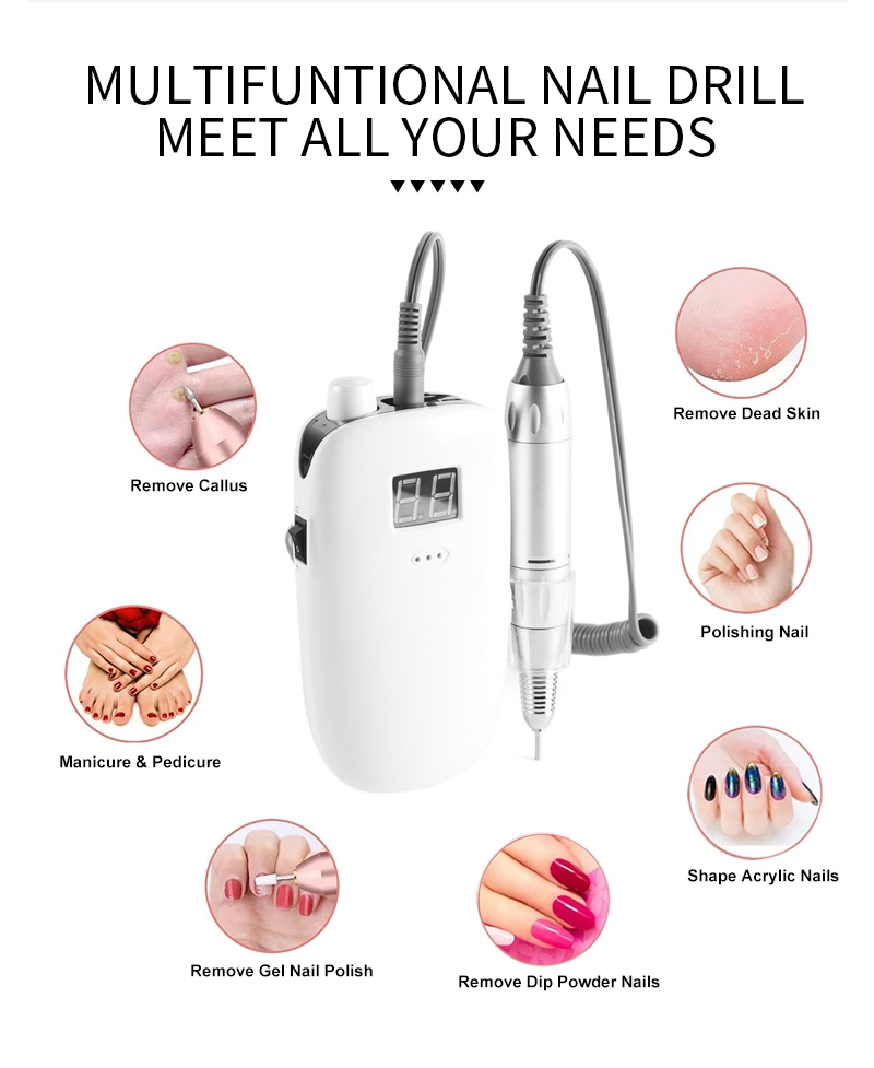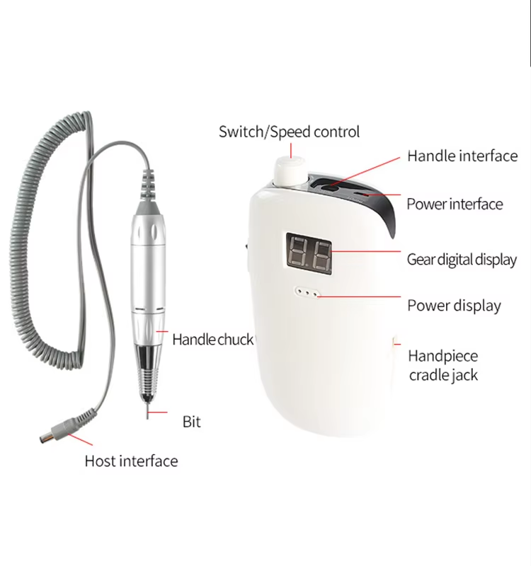 Pārnēsājams nagu urbjmašīnu komplekts elektrisks ar jaudīgu motoru 65w 35000rpm