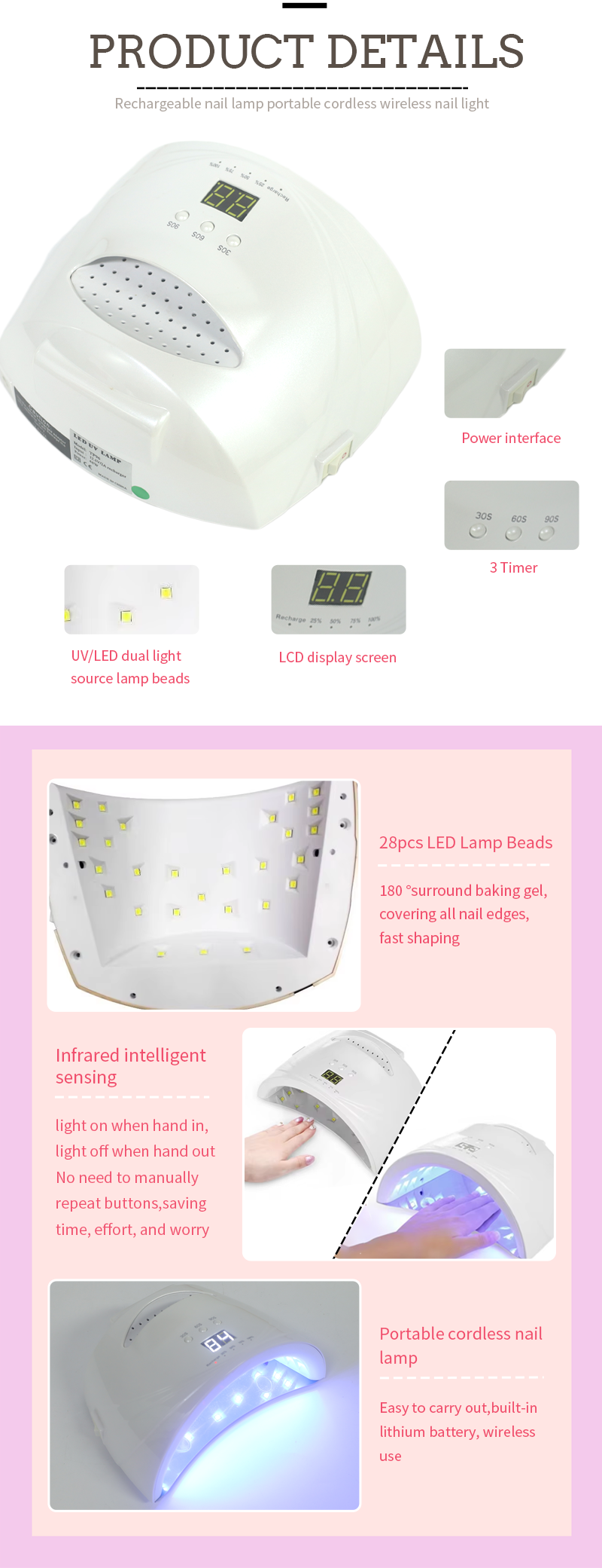 Produkts nodrošina pat līmes žāvēšanu bez saraušanās. Tās divkāršās gaismas avoti nodrošina maigu sildīšanu, lai novērstu roku maiņu un acu celmu, kas piemērots abām rokām un kājām, nodrošinot ievērojami ātru žāvēšanas rezultātus.