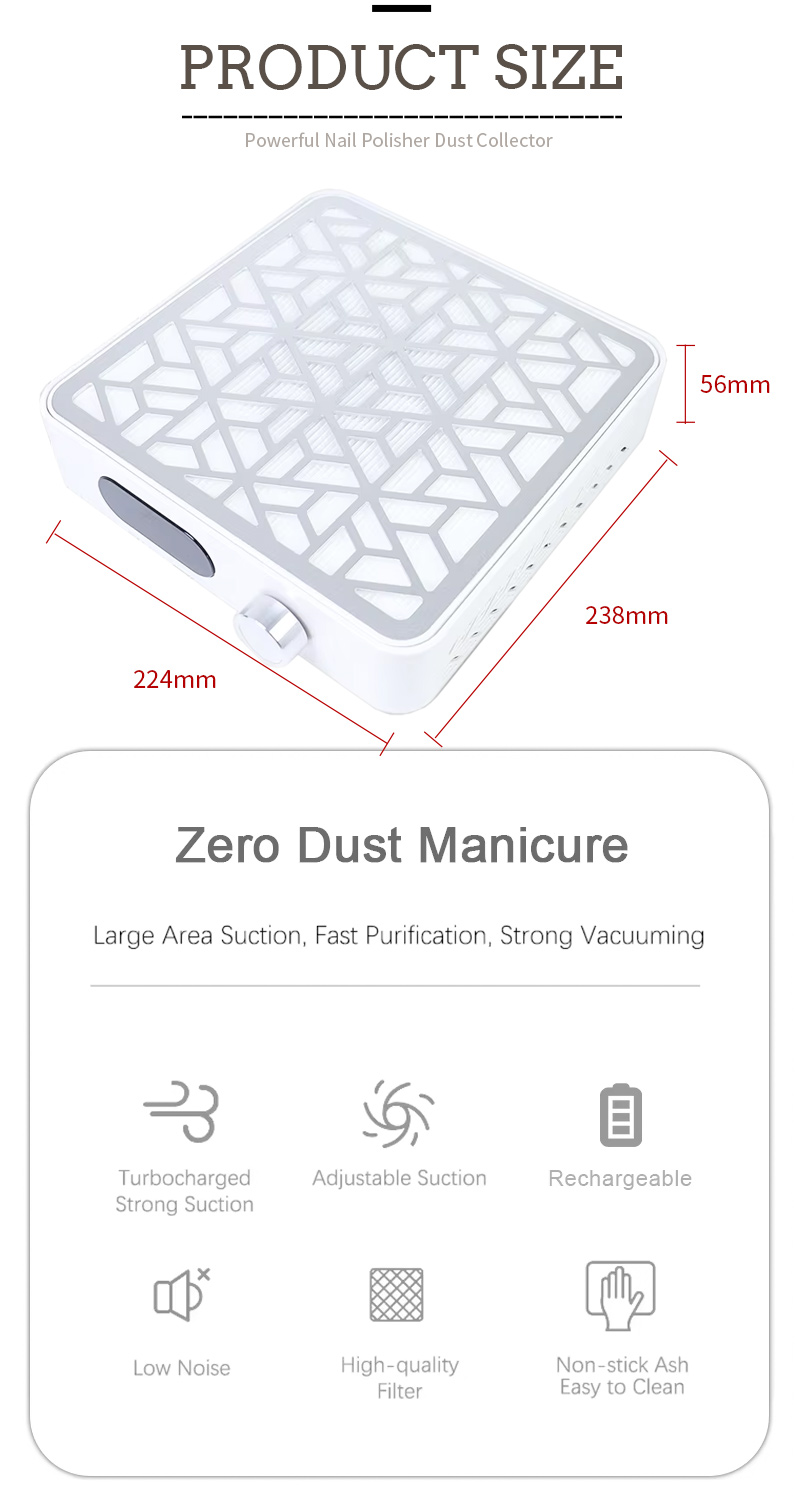 Produkta informācija par nagu putekļu vakuuma kolektoru bezvada