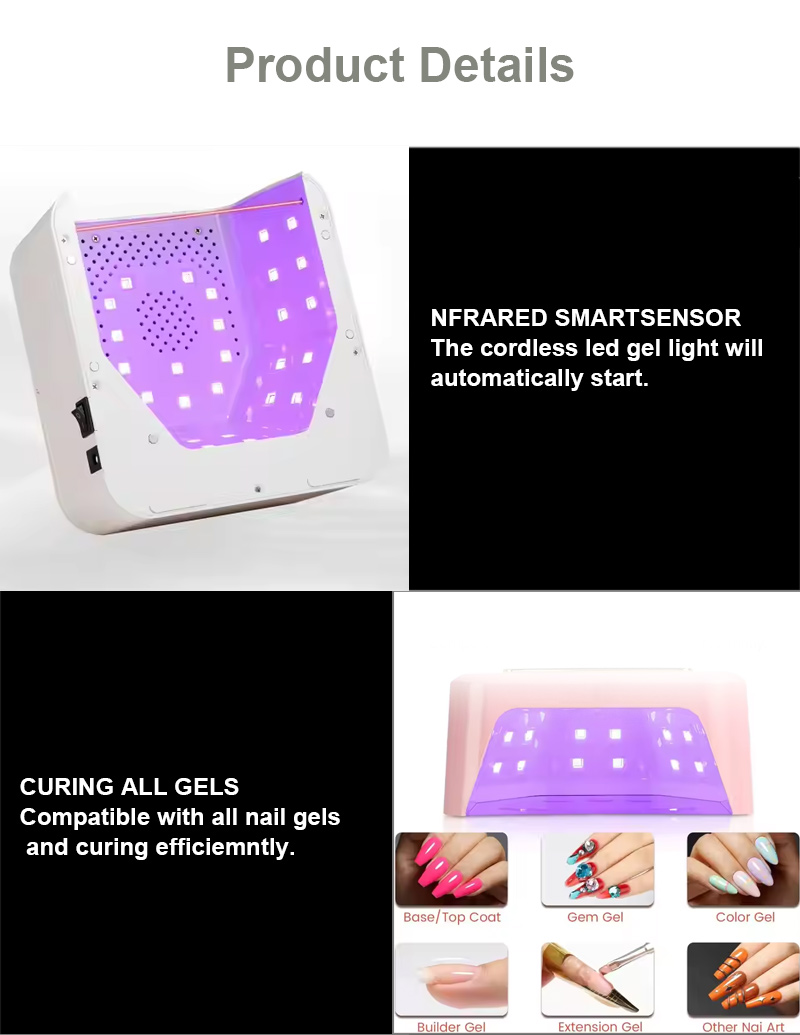 Mūsu galvenie produkti ietver LED nagu lampas: 186W/168W/86W/84W/80W/75W/72W/65W/60W/54W/50W/48W/36W/24W/16W/12W/6W/3W utt. Uzlādējami bezvadu modeļi: 156W/120W/96W/90W/86W/84W/80W/72W/66W/64W/60W/54W/48W utt. Nagu mākslas urbji: 80W/65W/60W/45W/35W/25W/15W, lādēšana utt. Bezvadu modeļi: 3W, 4,5W 25 W, 20 W, 15 W uc Pilns putekļu savācējs. 80W/68W/60W/48W/45W/40W/36W/30W/25W/20W/15W/6W utt., Bezvadu uzlādes modeļi: 80W, 60W, 40W, 30W.