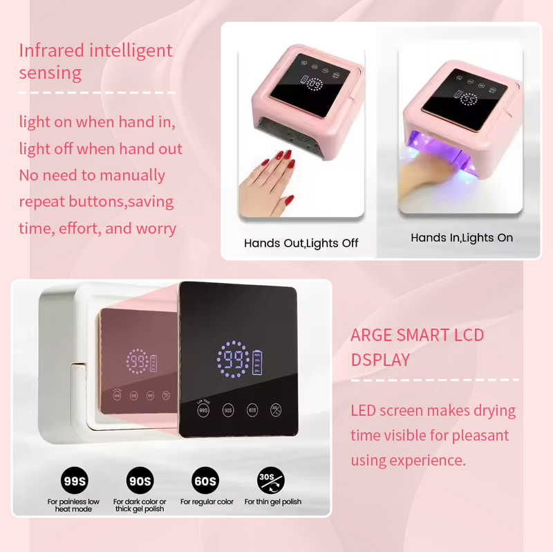 Jauna stila izliektās galvas saķeres nagu griešanas līdzekļiKā profesionāls ražotājs mēs ar prieku piedāvājam pielāgotu jaunu gēla nagu lakas ātri žūstošu lampu. Mēs nodrošinām augstākās kvalitātes pēcpārdošanas pakalpojumus un nodrošinām savlaicīgu piegādi. Šim izstrādājumam ir inteliģenta sarkanās gaismas tehnoloģija, kas ir maiga rokām, 5 sekunžu ātra žāvēšana, liels skārienekrāna displejs un atbalsta taimera funkcijas. Pateicoties intuitīvajām pogu vadības ierīcēm un visaptverošiem darbības norādījumiem, pat pilnīgi iesācēji to var izmantot bez piepūles.