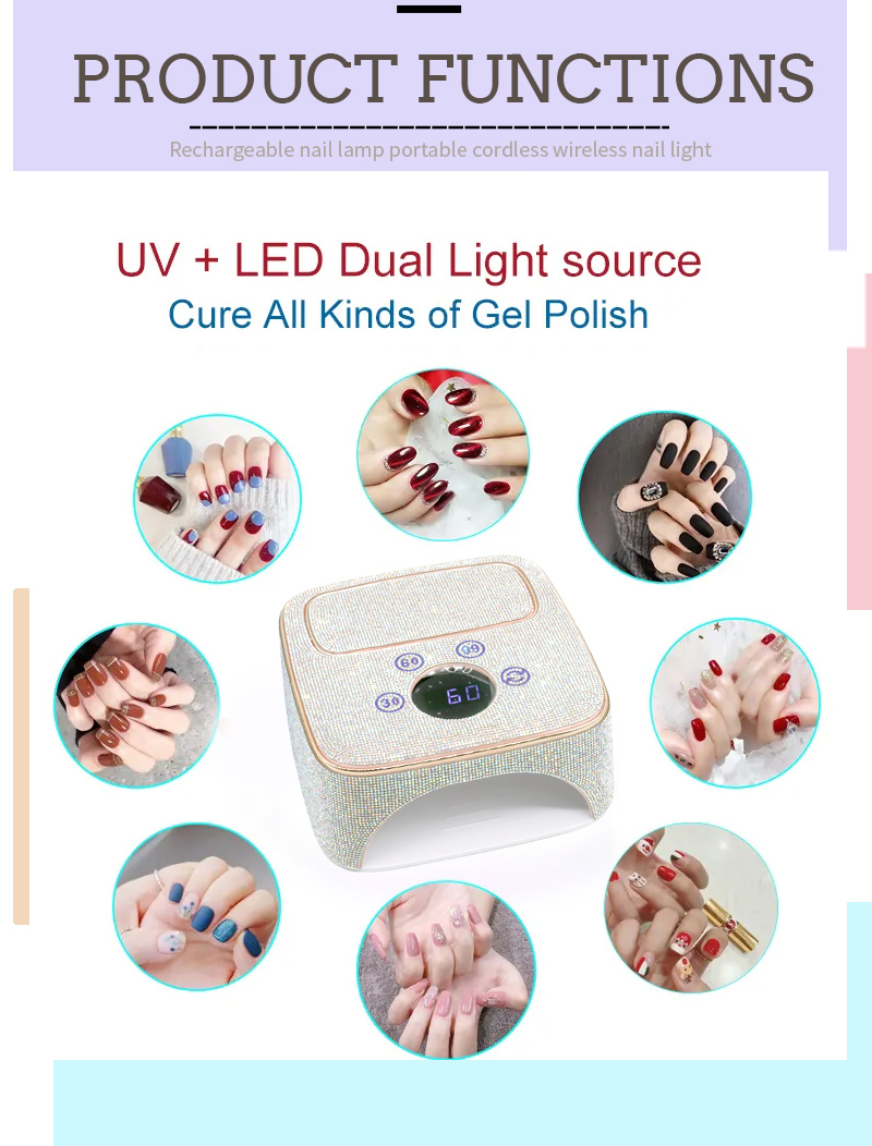1, dubultā gaismas avota LED lodītes, var cept dažādas nagu līmi un funkcionālu līmi.