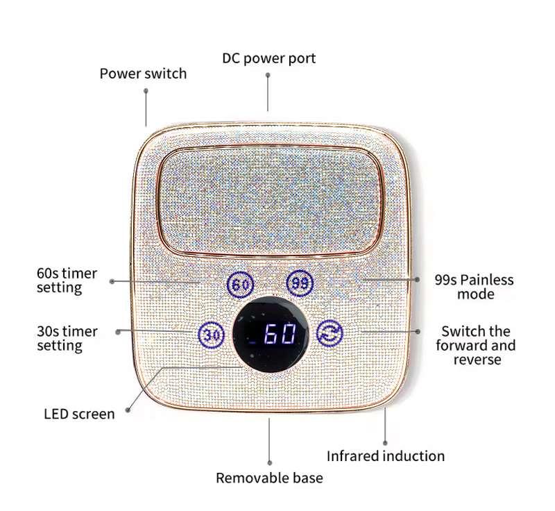 2, uzlādējama nagu cepšanas gaismas profesionālā versija 90W, kas aprīkota ar neslīdošu pamatni.
