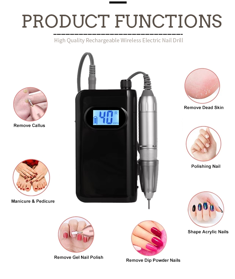 K91 ātrgaitas 40 000 apgr./min elektriskā nagu faila produktu īpašības un pielietojumi nagu lakas noņemšanai