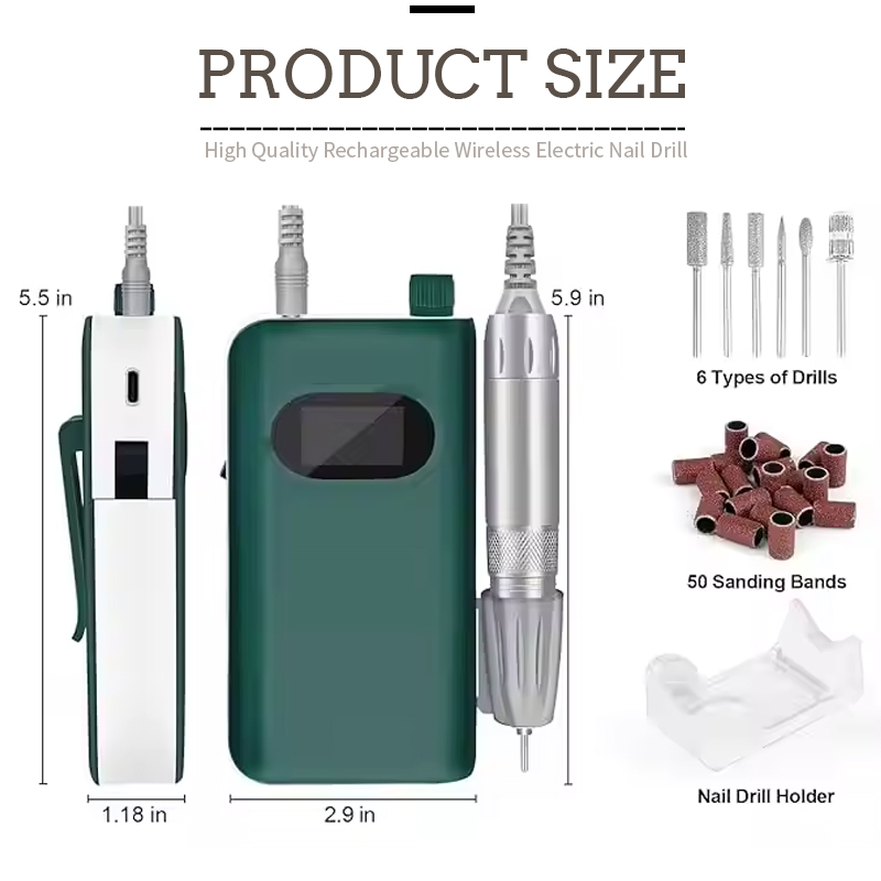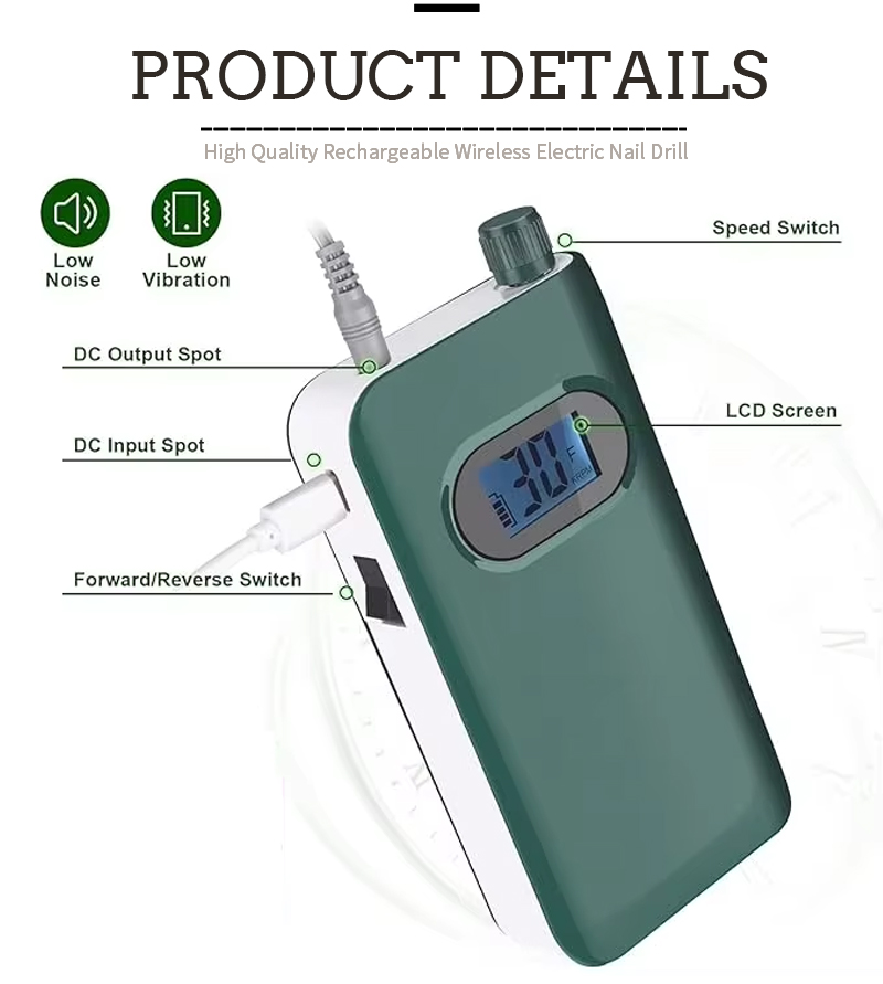 Pārnēsājams nagu urbjmašīnu komplekts elektrisks ar jaudīgu motoru 65w 35000rpm