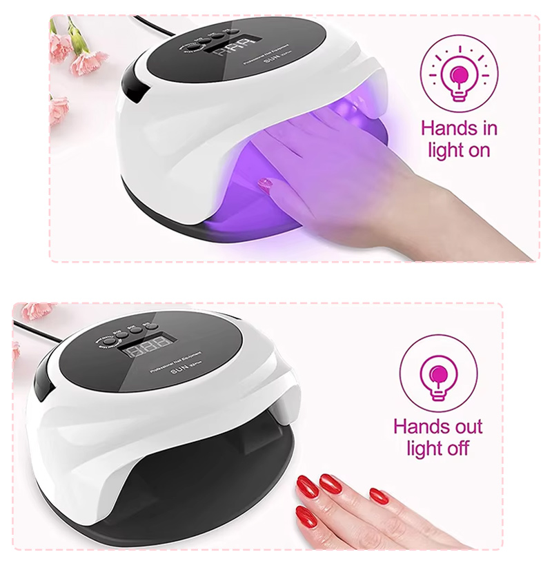 Produkts nodrošina vienmērīgu līmes žūšanu bez saraušanās. Tā dubultie gaismas avoti nodrošina maigu sildīšanu, lai novērstu roku krāsas maiņu un acu nogurumu, piemērots gan rokām, gan kājām, nodrošinot izcili ātrus žāvēšanas rezultātus.