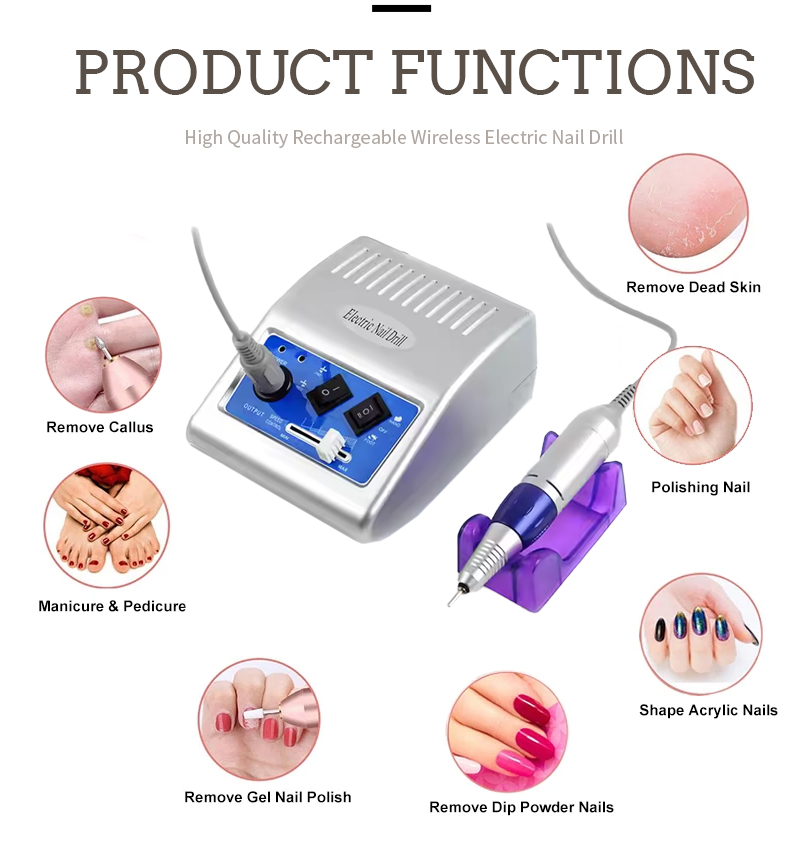 Pārnēsājams nagu urbjmašīnu komplekts elektrisks ar jaudīgu motoru 65w 35000rpm