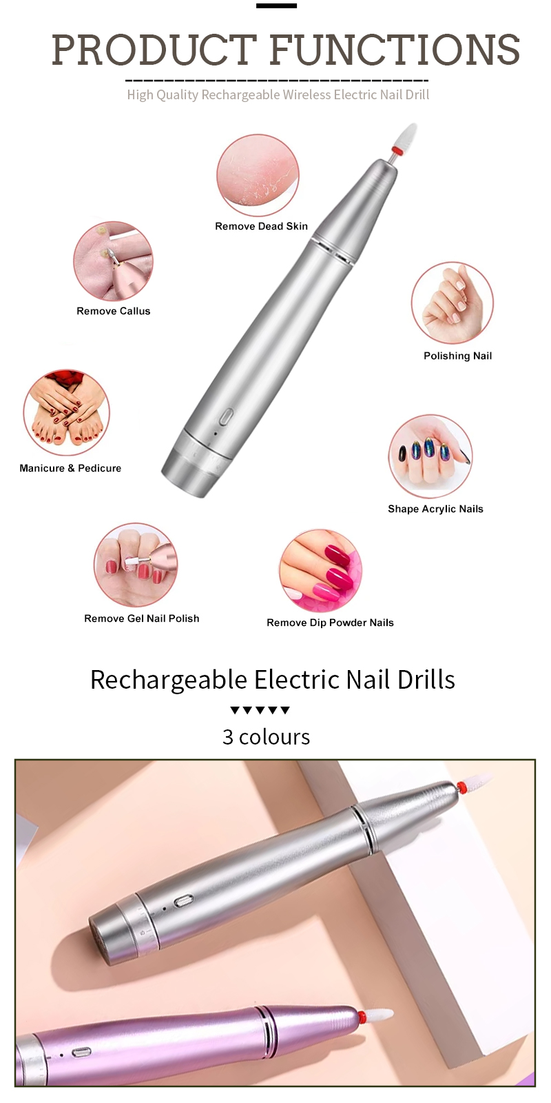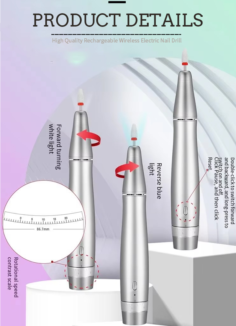 Pārnēsājams nagu urbjmašīnu komplekts elektrisks ar jaudīgu motoru 65w 35000rpm