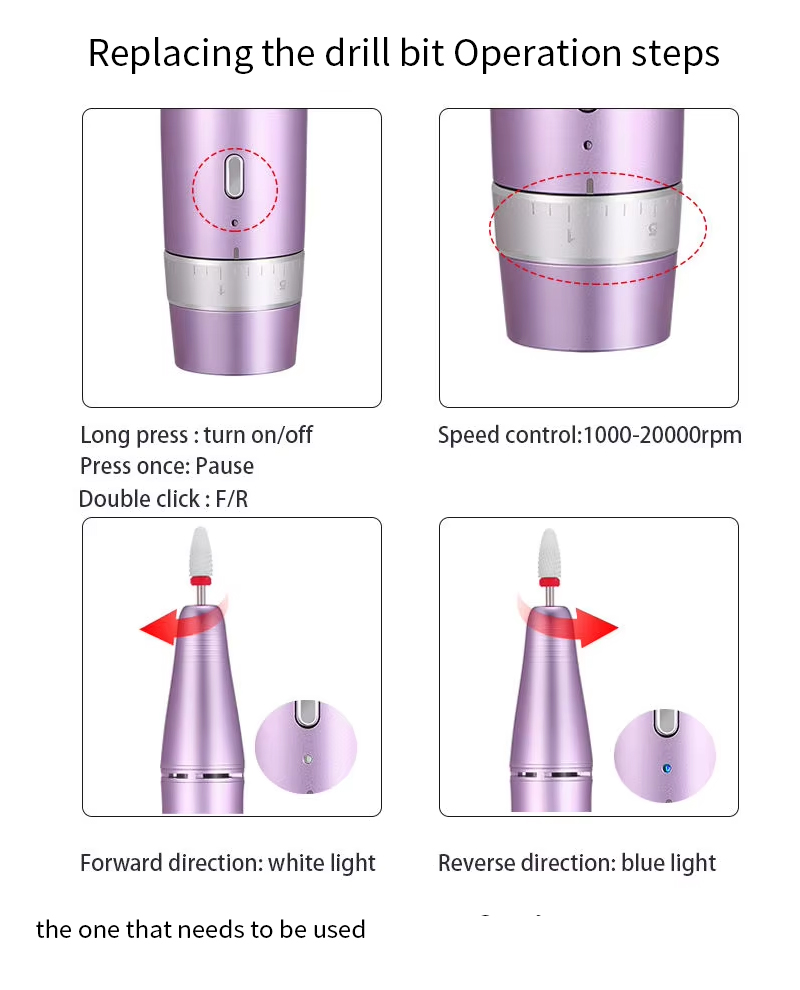 Produkta īpašības un UV-1001 ātrgaitas 20 000 apgr./min elektriskā nagu fails nagu lakas noņemšanai