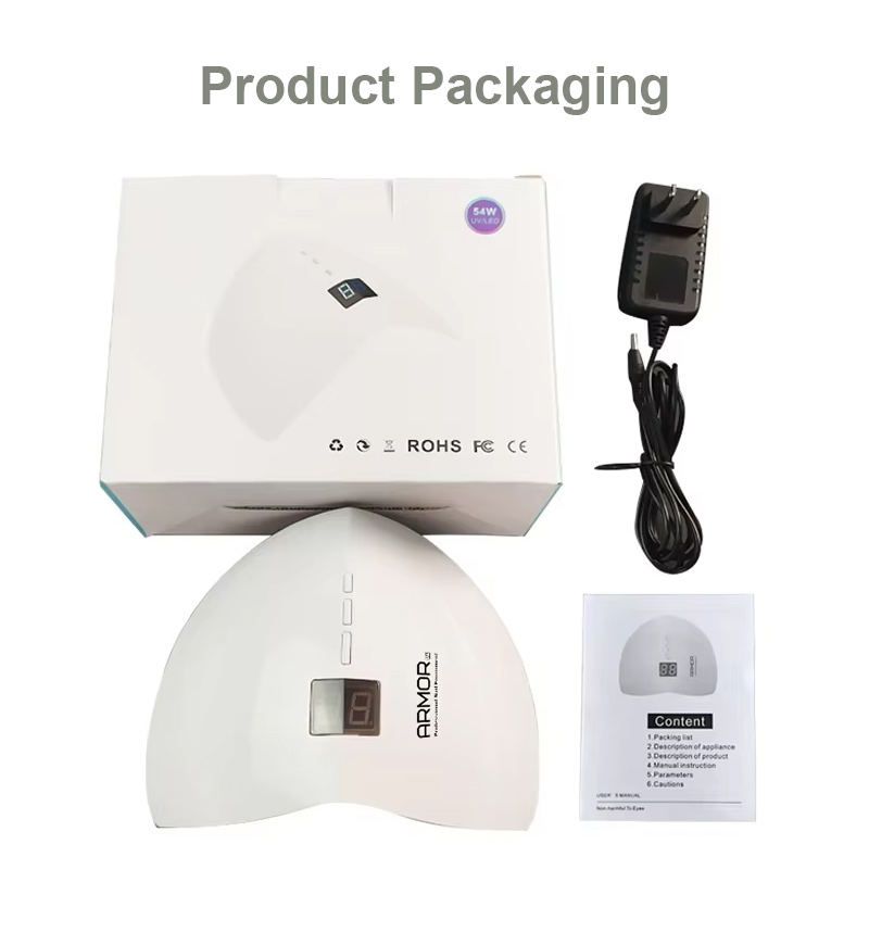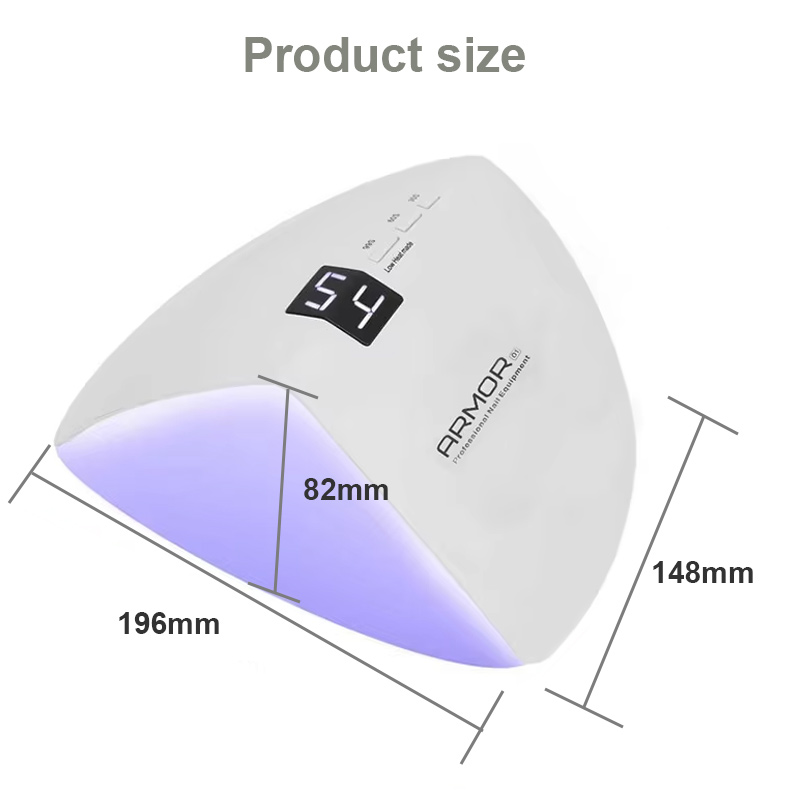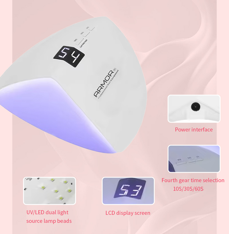 Produkts nodrošina vienmērīgu līmes žūšanu bez saraušanās. Tā dubultie gaismas avoti nodrošina maigu sildīšanu, lai novērstu roku krāsas maiņu un acu nogurumu, piemērots gan rokām, gan kājām, nodrošinot izcili ātrus žāvēšanas rezultātus.