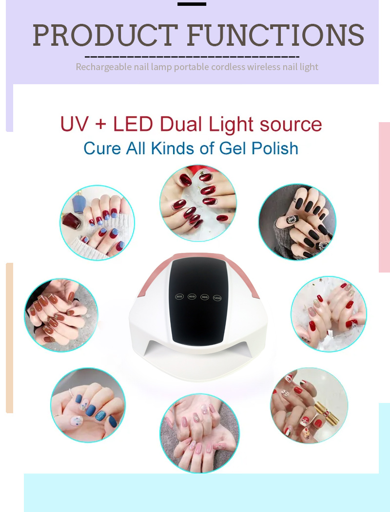 1, dubultā gaismas avota LED lodītes, var cept dažādas nagu līmi un funkcionālu līmi.