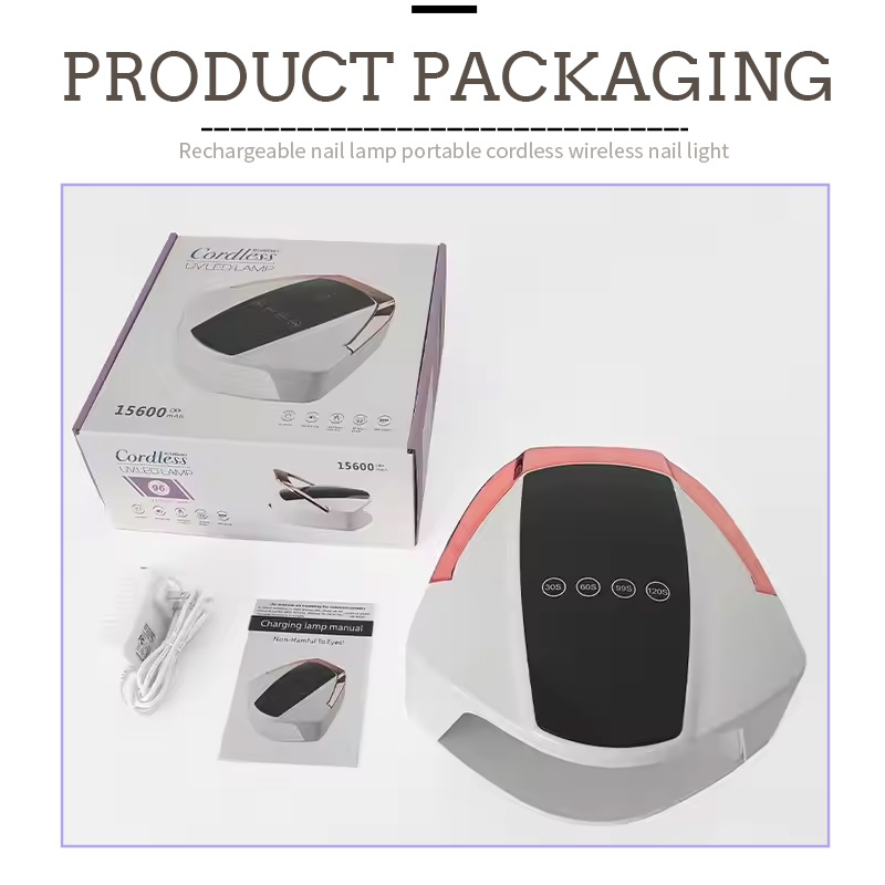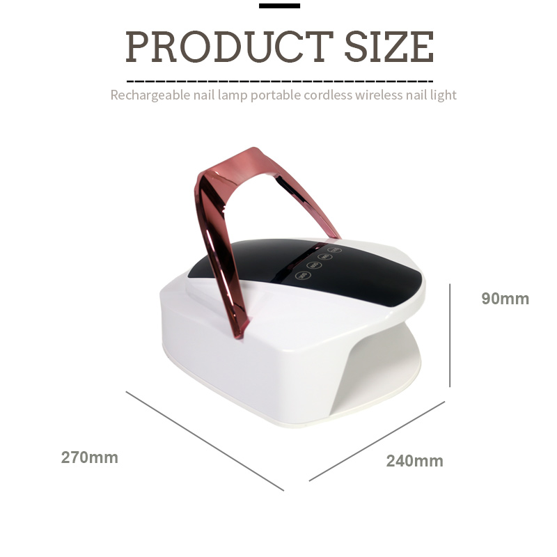 Uzlādējama nagu lakas lampas profesionālās versijas 90W produkta izskats ir rievu dizains, rokturi rievā var izmantot kā pārnēsājamu roktura lomu, padarot to ērtāku nēsāšanai un ievietošanai. Tas arī ļauj izvairīties no tā, cik neizdevīgi rokturis ir viegli salauzts un novilkts.