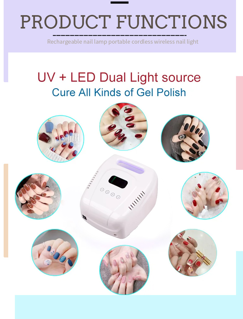 1, dubultā gaismas avota LED lodītes, var cept dažādas nagu līmi un funkcionālu līmi.