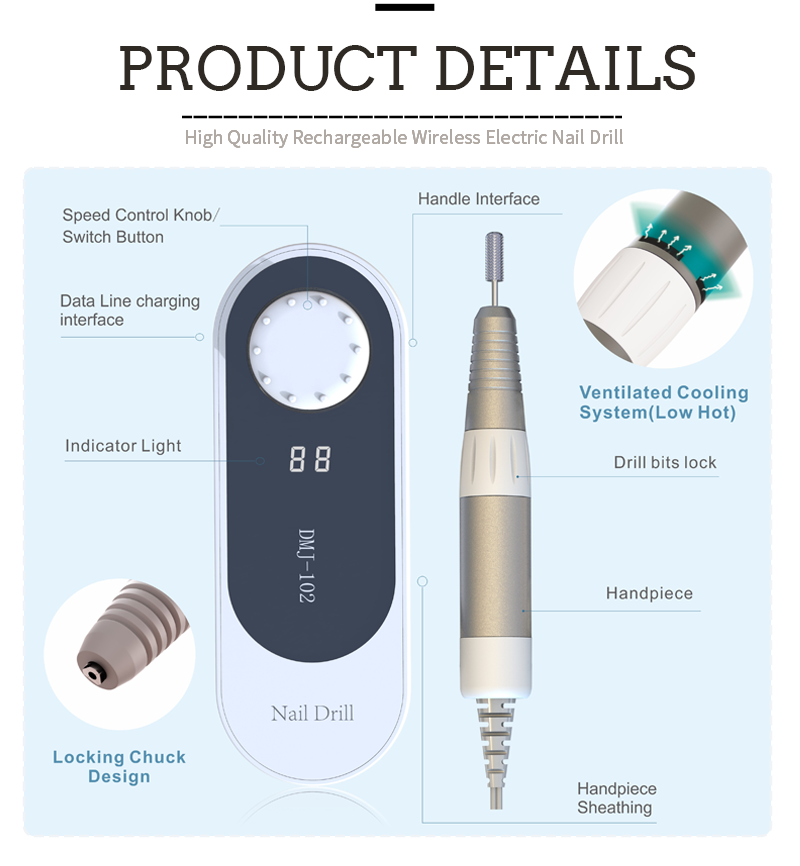 DMJ-102 ātrgaitas 35 000 apgr./min elektrisko nagu fails poļu noņemšanai: funkcijas un lietojumprogrammas