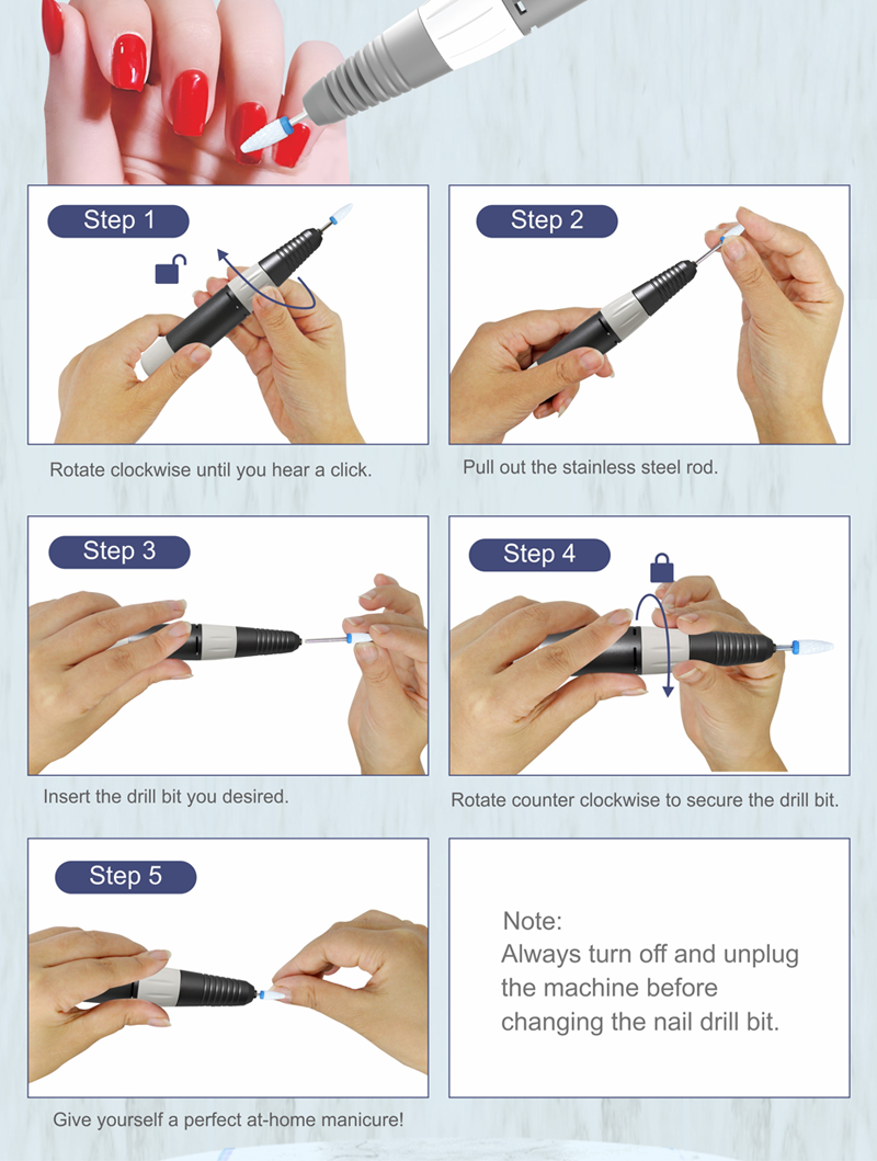 Elektriskais nagu urbjmašīnas komplekts gēla lakas noņemšanai 65w 35000rpm