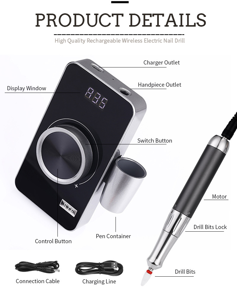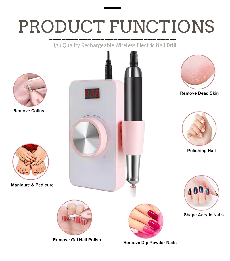 Uzlādējams nagu urbjmašīnas komplekts nagu urbjmašīna uz pirkstiem pirkstiem 35w 35000rpm
