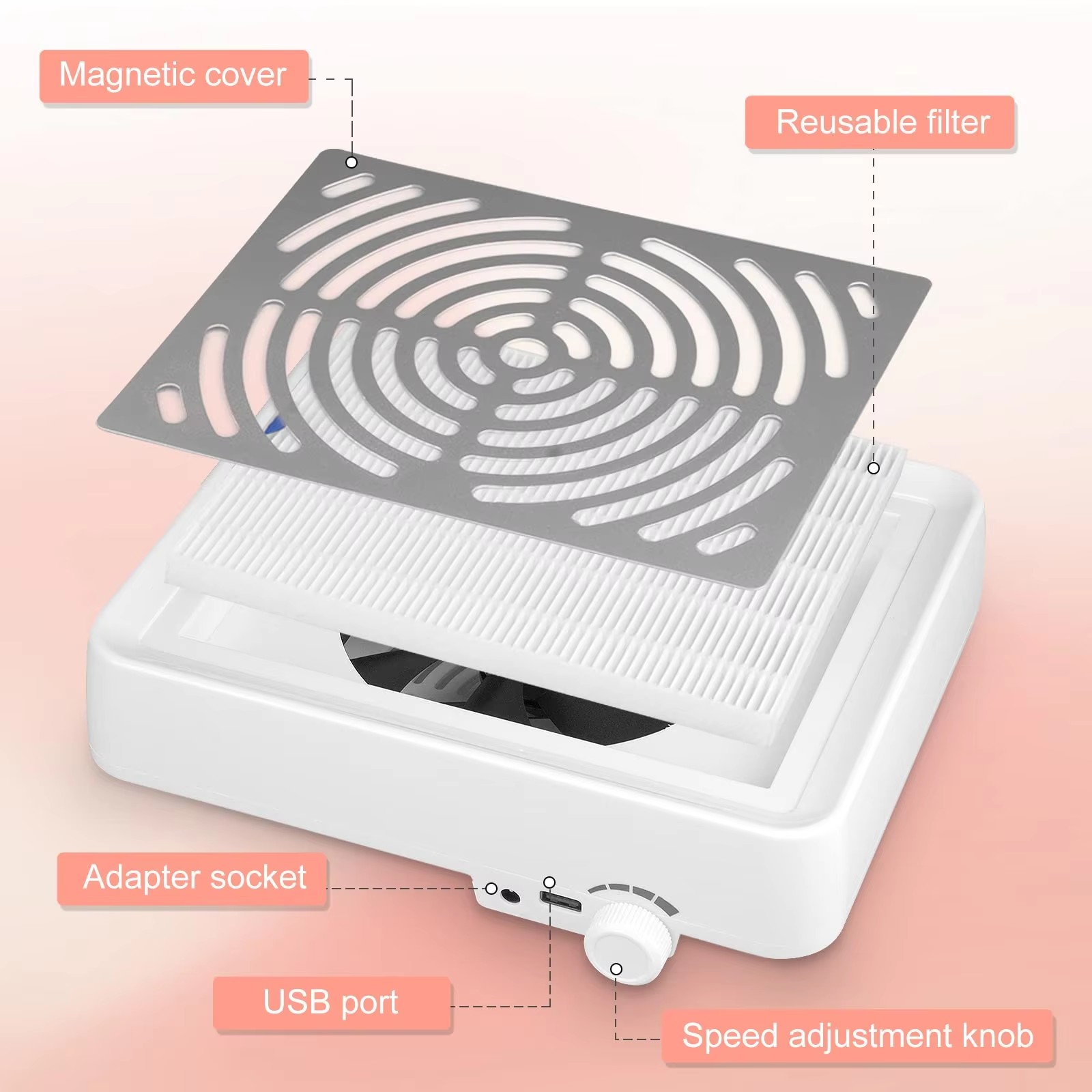 Uzlādējams nagu putekļu savācēja ventilators ar filtru 40w