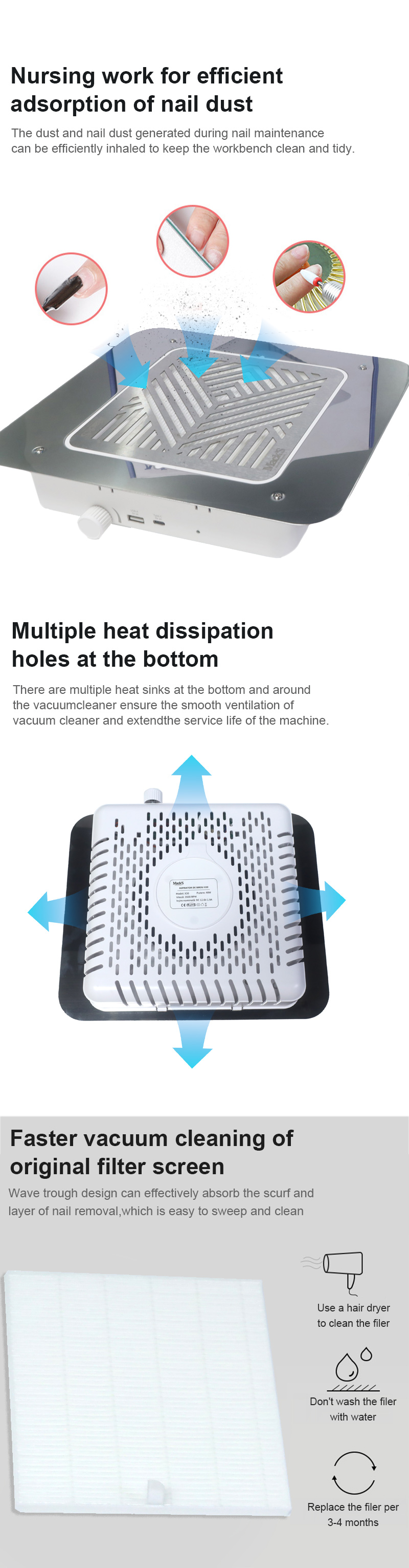 Produktiem spēcīga nagu gružu adsorbcija neizlaiž putekļus, uztur letes virsmu tīru un kārtīgu, ātra putekļsūcēšana neizlaiž putekļus, jaudīgāka.