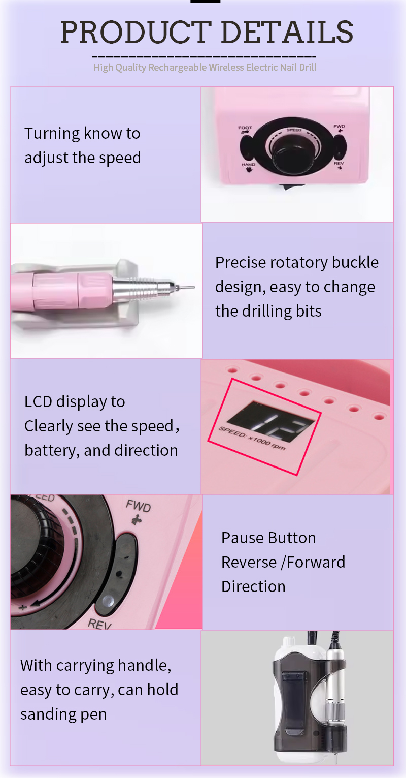 Pārnēsājams nagu urbjmašīnu komplekts elektrisks ar jaudīgu motoru 65w 35000rpm